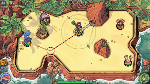 This game is overall a lot of fun. First of all, it features a solid core gameplay loop: you shoot your character at different angles, crash into enemies to deal damage, and then land in a new position to dodge incoming attacks. Mastering the shooting mechanics takes real skill and practice, as you’ll need to both deal damage and position yourself strategically for the next turn.