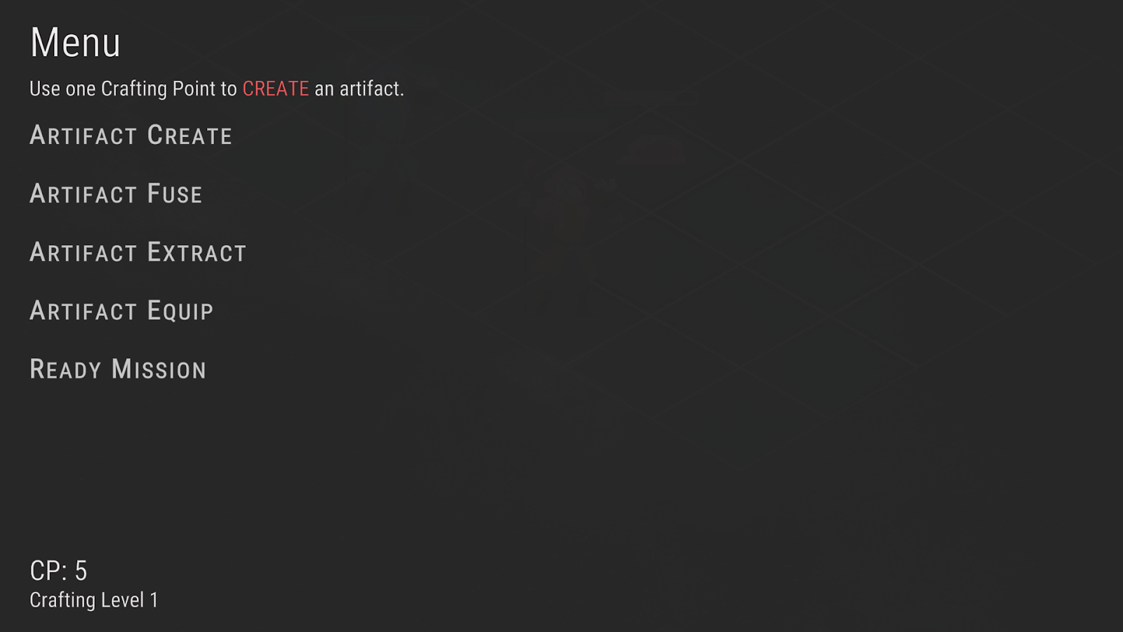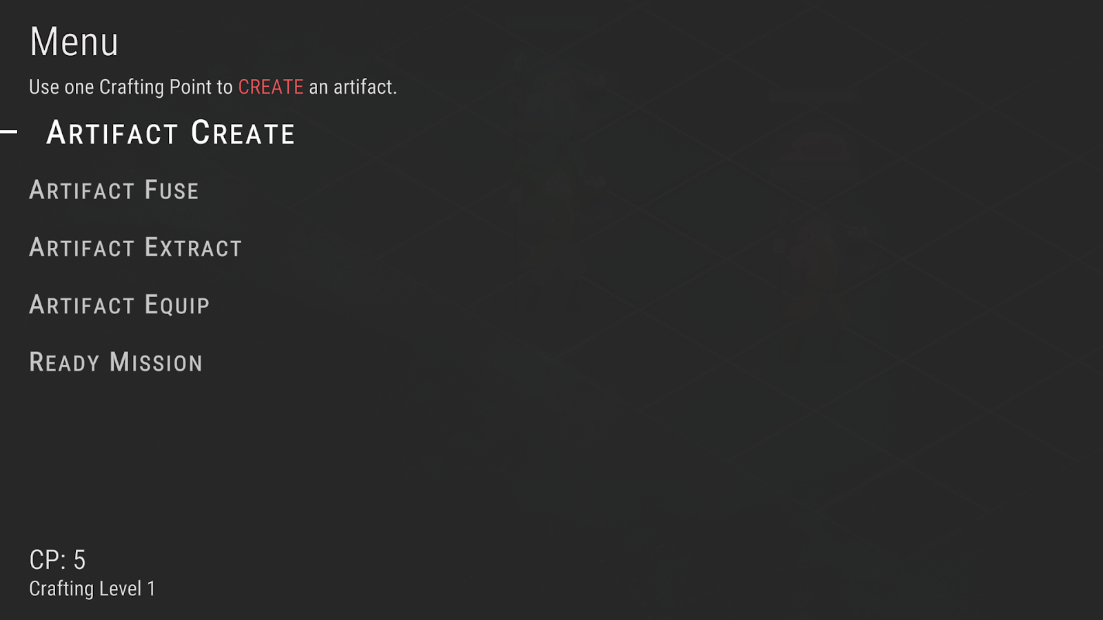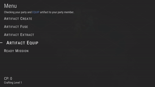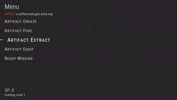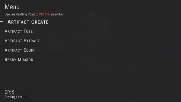 After winning a battle, players can enter the crafting phase. In the crafting phase, players can perform five different actions: Create, Fuse, Extract, Equip, and Ready. Every time when players enter the crafting phase, their crafting level will increase by 1, and they will gain more crafting point (CP) to use at the start of the phase.