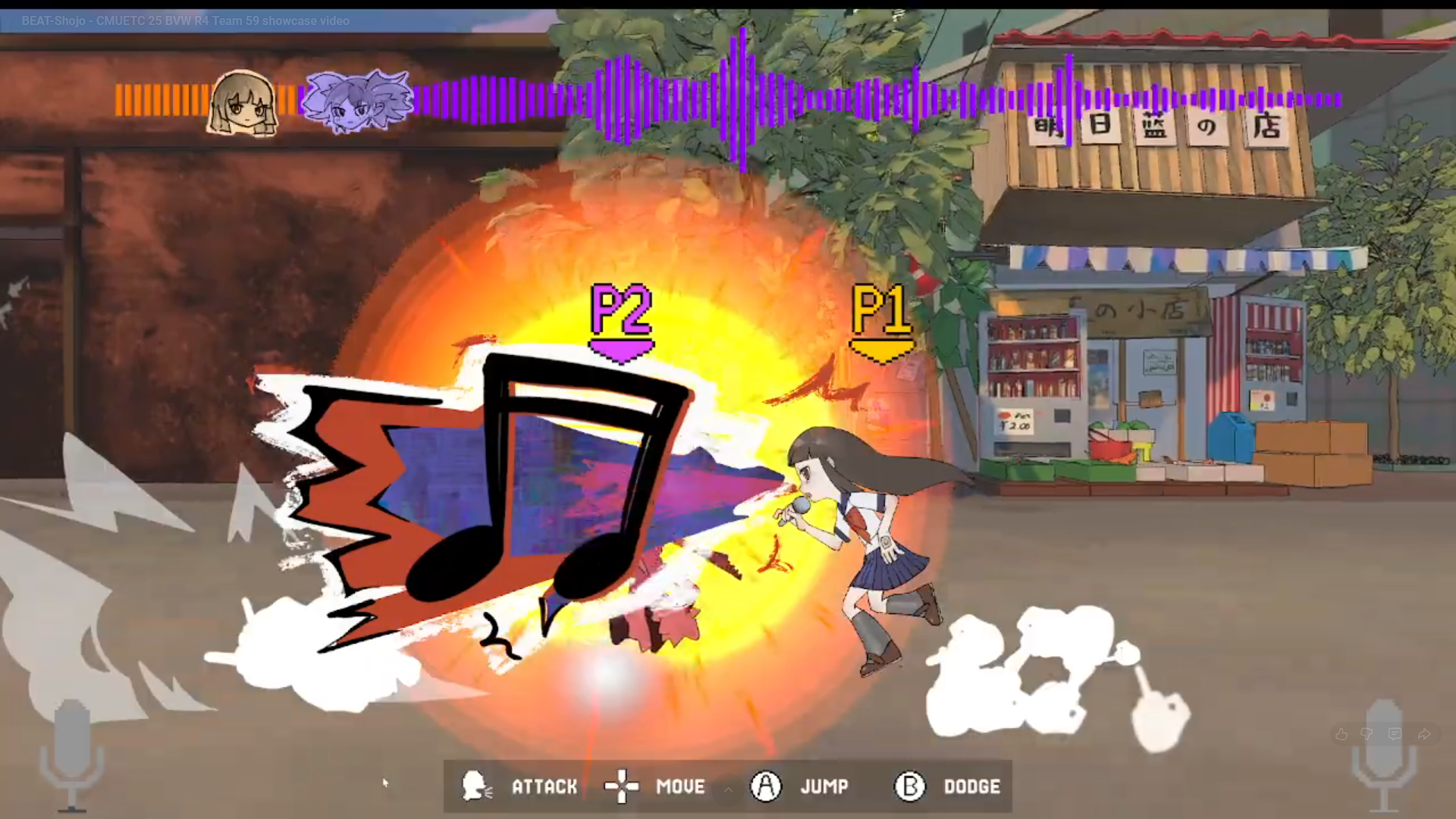 We thought of using microphone input as one of the key mechanics, allowing us to attract people through the loudness our game created. We analyzed that guests would want to try the game when they think they can do better, so a game that is easy to understand is important. Additionally, if we want players to replay, we still need extra design depth. Thus, we concluded that we could make a Smash-like fighting game involving yelling into a microphone to launch attacks. Since it is Smash-like and uses microphone input, it would be easy to understand, and the competitive nature and deep strategy of fighting games would encourage replay.