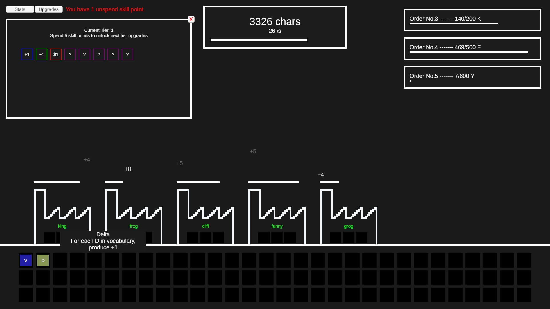 An incremental prototype game about vocabulary factory, spelling words to gain numbers.